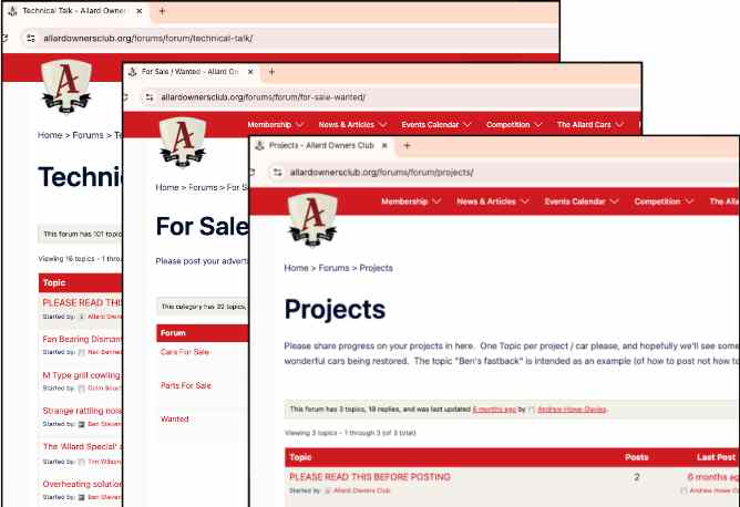 Visit our forum and get the practical advice from club members, find or sell parts and cars and keep up to date with other member’s restoration projects