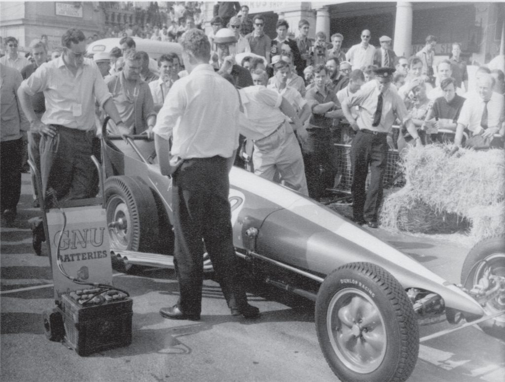 At the 1962 Racing Car Show the dragster was shown and in order to show the car off in it’s best light the body was cut down it’s centre line revealing the engine and supercharger. An impressive way to show the car but an expensive operation in welding it back together and re-painting the whole car!
