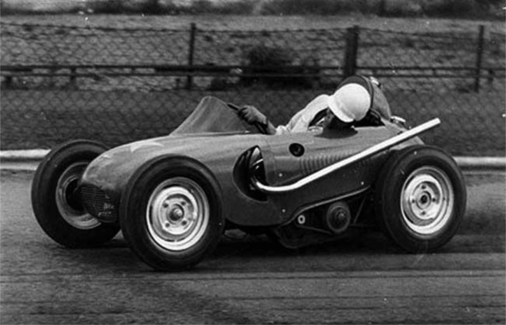 Before the body was made, the car was taken to the Wimbledon Speedway track for Ronnie Moore to test. Once unloaded in the car park it was given a brief run on the tarmac surface to do some basic checks before being tried on the track. After one exploratory lap on the cinders, the speed was increased for a few laps, however due to ruts being left on the bends by the earlier practicing bikes the ‘Atom’ caught a rut and rolled. Ronnie Moore suffered a broken collar bone! One lesson learnt from the accident was that the cinder surface of that time, needed to be prepared for car racing.