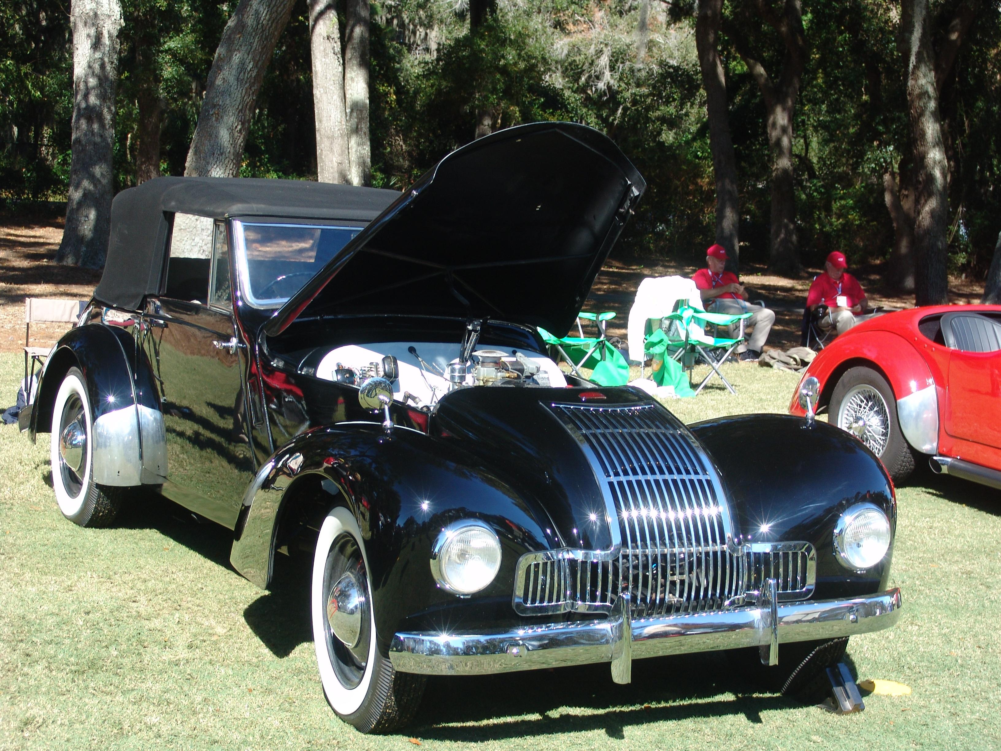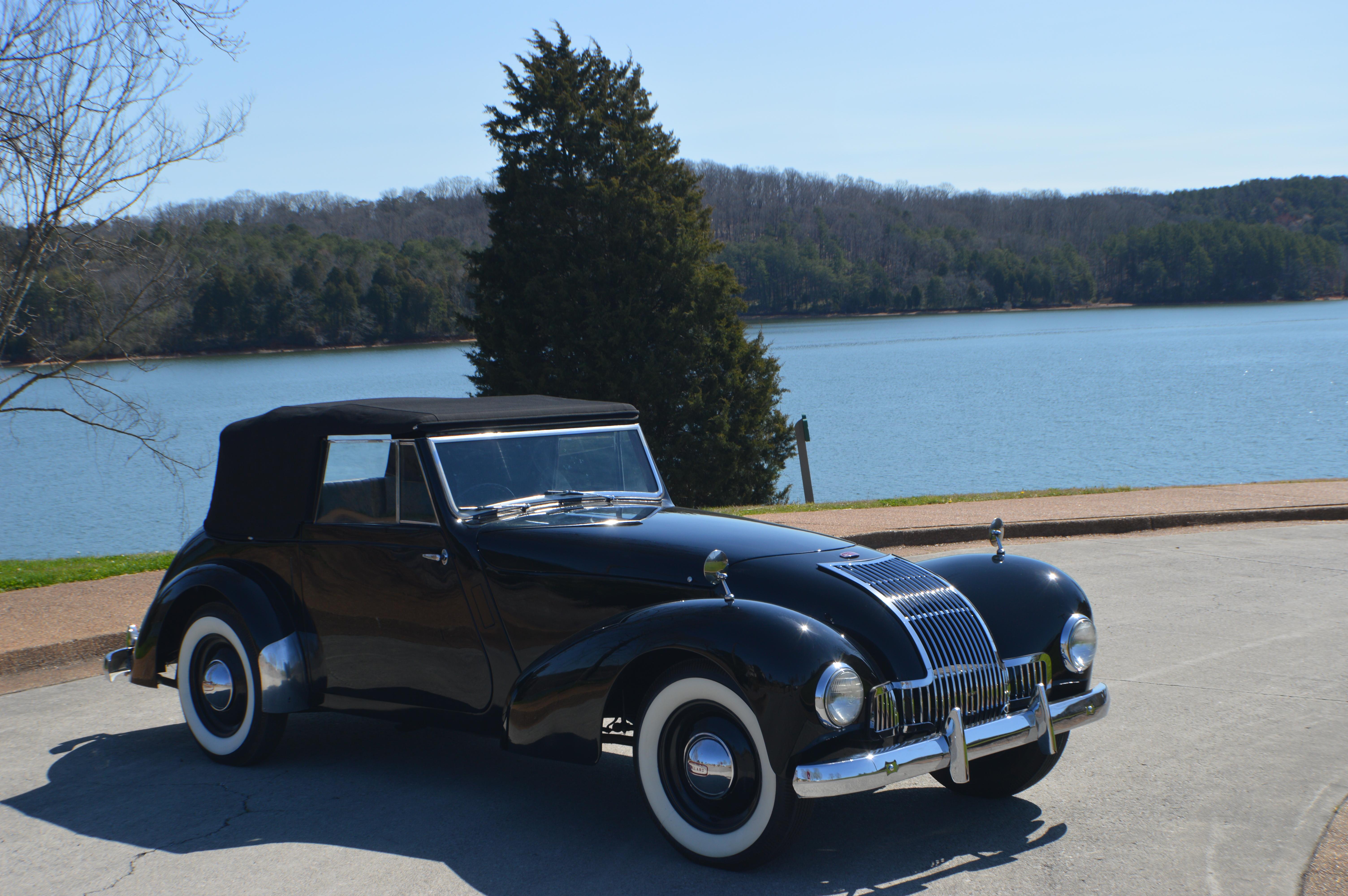 This Allard M type was originally purchased by the Shaw of Malaysia in 1949 and shipped to him. The current owners goal was to return it to the original condition with no upgrades, but just to keep it totally original. The car was taken to a full frame off restoration, a new interior and repair of the instruments, as well as a new top complete with the wooden bows, a new set of Coker tires, new electrical and any parts that needed to be replaced were either custom machine to spec or were able to purchase. This car is totally restored and has a very very expensive paint job.