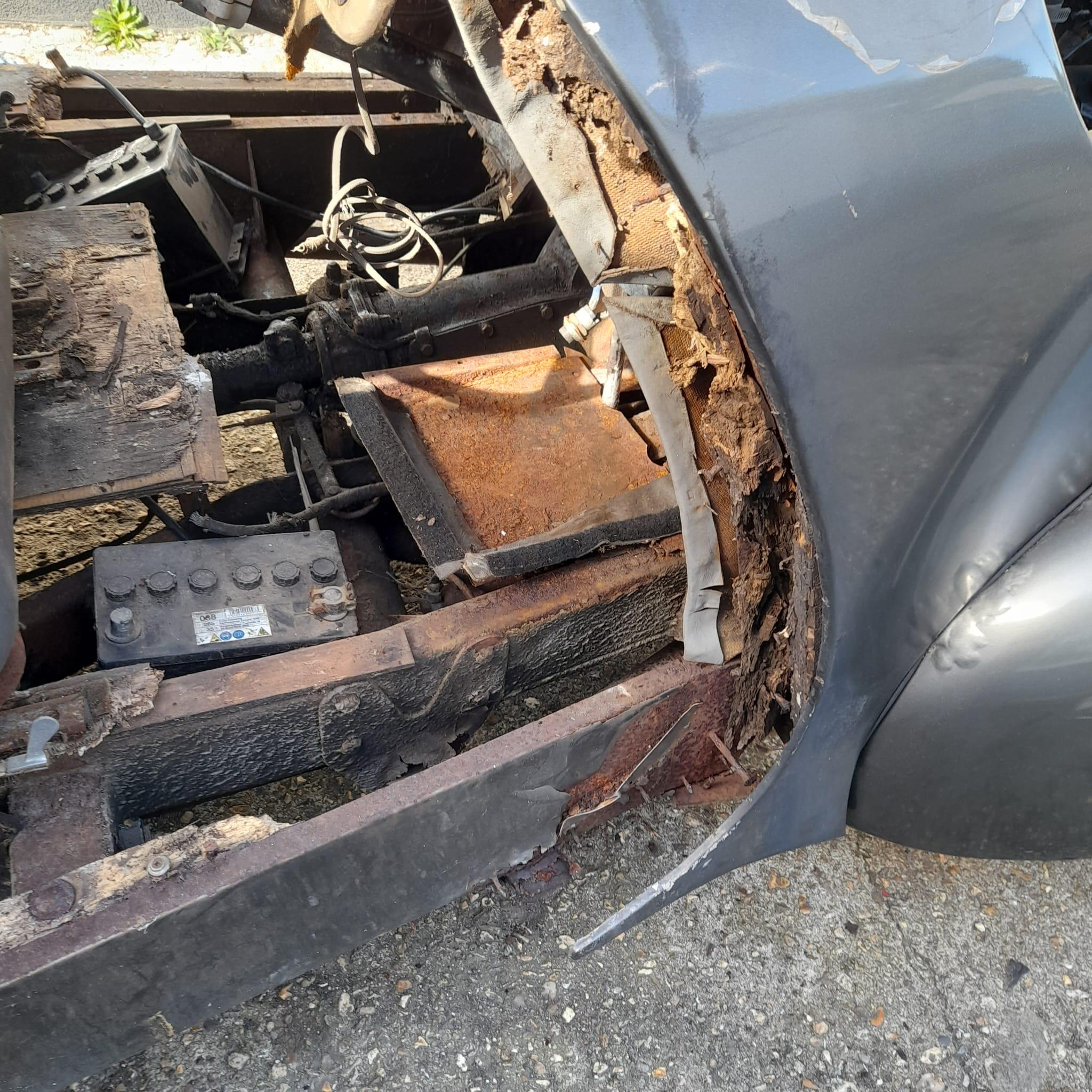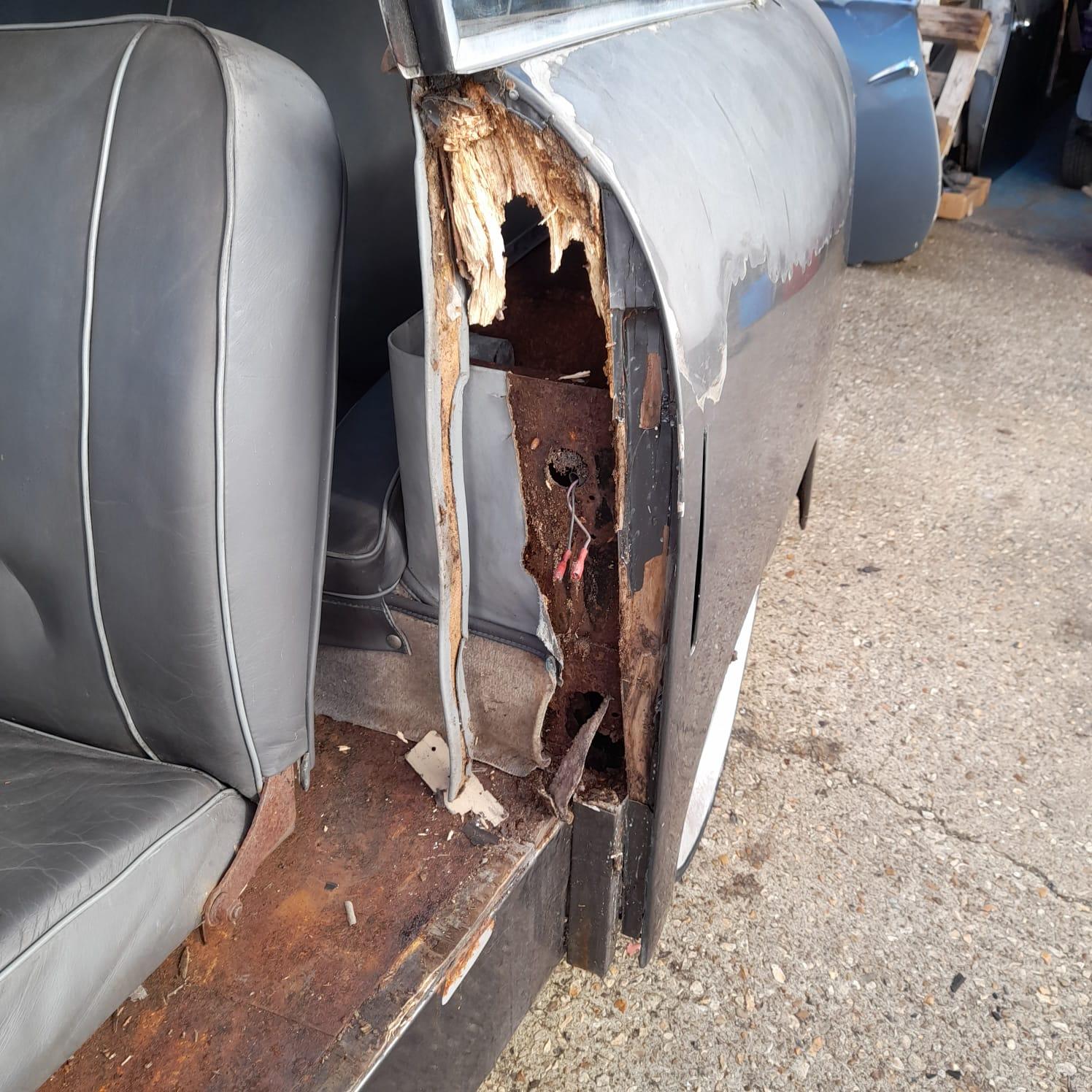 I’ll probably make a wooden battery box Ben. Yes, the woodwork is in a terrible state but my metalworking friend says the rusty sheet work is generally in reasonable condition thankfully. We took the windows out and then I made the call to remove the roof!!
